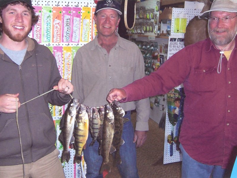 AND WE ALL KNOW WHAT THAT MEANS. ” WHEN THE LILOCS ARE BLOOMING, THE WALLEYE ARE BOOMING.” HOW TRUE. WE HAVE A PICTURE OF A GENTLEMAN WITH HIS SON, AND BEST FRIEND, HOLDING A STRINGER OF WALLEYE AND PERCH FROM SUNDAY, MAY 16.