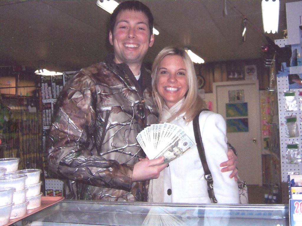 Yesterday a very happy couple collected their prize money in our Bait Rewards giveaway . Their number was picked out of a bucket by a customer, and the call was made. The winner also donated a $20 bill to the person who drew the lucky number. Congratulations. We will start a new contest today, and if there is still interest in this we will continue on a weekly basis, if not, we will discontinue it. If you are unfamiliar with this game, it goes like this. Donate $ 5 once into the pot per week, and get a number to play. Then every time you buy bait you get another [same] number to enter into the drawing. Then a customer draws the number on Sunday and we look up your phone number and call you. Need not be present to win. Very easy, and just a fun way of winning a bit of cash. It is a 100 % pay back.