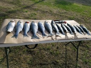 I heard some interesting fish stories from Arizona this week. Why is that interesting ? Lorie was out there visiting family and was taken out fishing in a lake in the Phoenix area. She sent pictures of her and their catch one day. Fifteen Striped Bass. Yep I checked, theses fish are being stocked in some inland lakes and have met with great success. The really interesting part of this fish story is that they were all using Lorie Rigs. The bait on them was anchovies. So if you are ever in the Phoenix area, get some Loire Rigs here first and some anchovies there. ( just trying to help you folks)